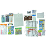 ・套組內含防災用品:多功能美工刀、高亮度LED手電筒、醫療防護口罩、工作用軍手套、萬用繩、緊急求救哨、緊急逃難背包、雨衣、保暖鋁箔毯、野餐防潮墊、折疊攜帶式拖鞋、OK繃、口袋面紙&濕紙巾、衣物壓縮袋、牙刷牙膏組、多功能收納袋、摺疊式儲水桶、簡易攜帶式廁所、個人清潔組。